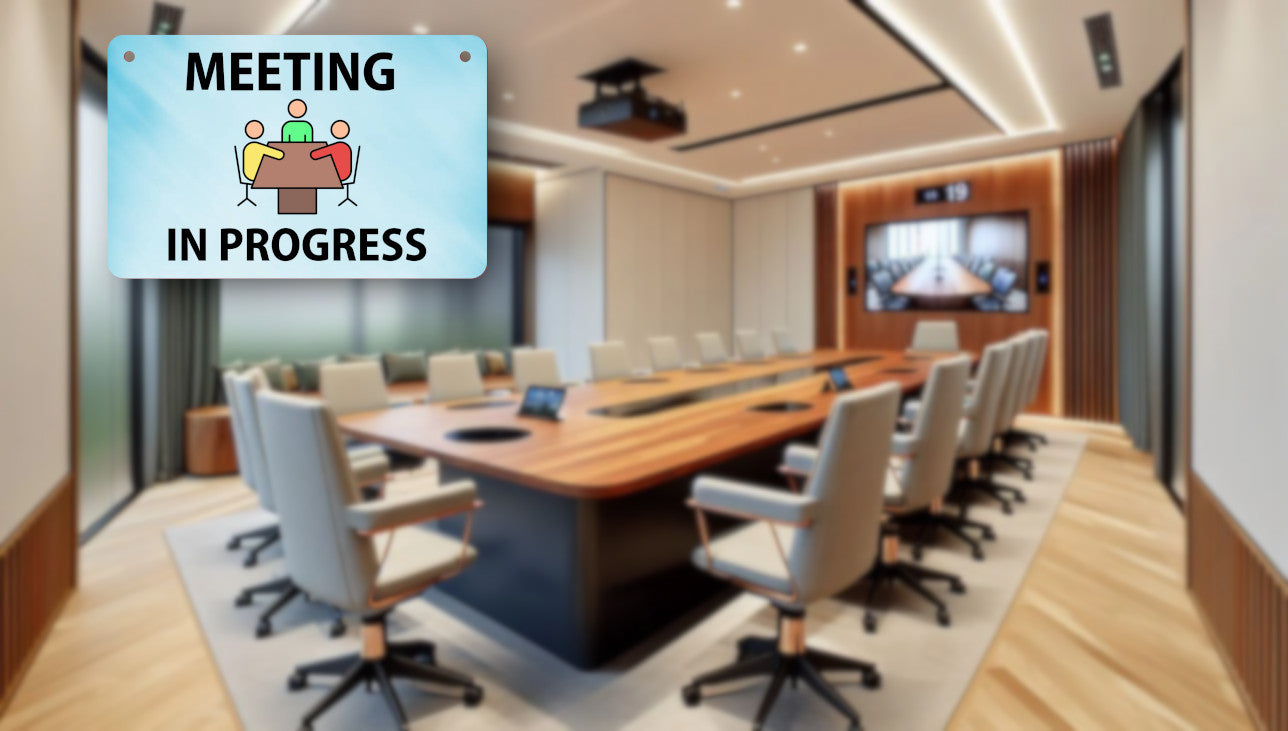 Perfect for businesses and institutions alike, this sign enhances the professional atmosphere of any meeting room. It is an essential tool for maintaining privacy and minimizing interruptions, ensuring that your meetings are productive and efficient.
